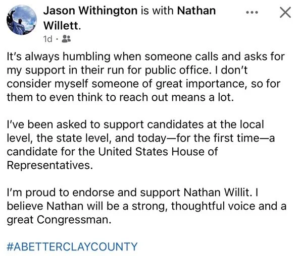 On social media, Nathan Willett is gathering endorsements…